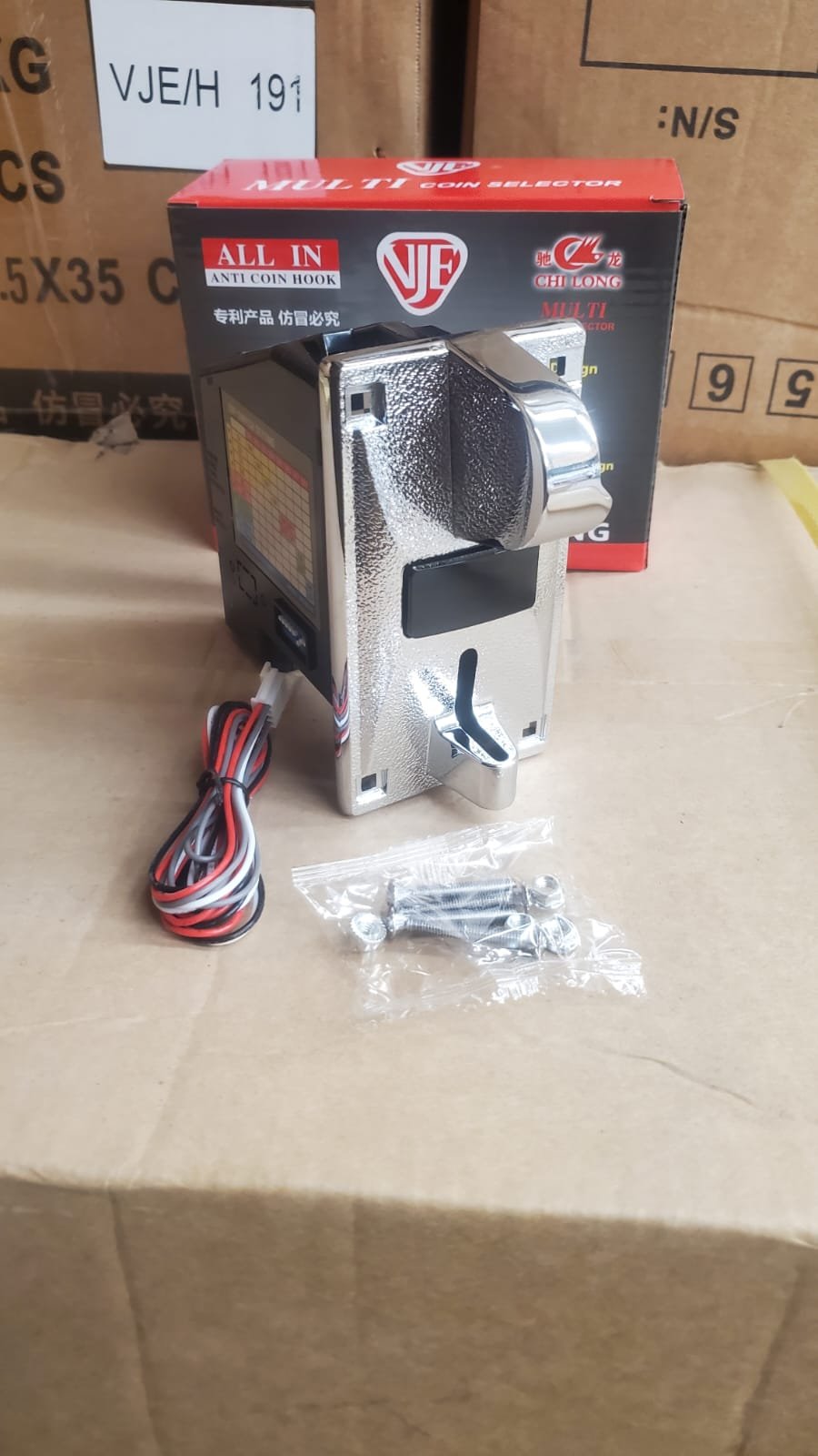 Monedero universal para máquinas tragamonedas y arcade. Fabricado en metal resistente con sensor de alta precisión. Acepta una sola denominación (no multimoneda) y cuenta con sistema anti-robo integrado. Fácil instalación, durable y compatible con la mayoría de tableros de control.
